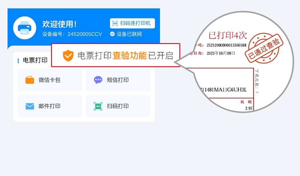 财智e办公小程序还有多项实用功能,满足多样化打印需求。除了可以微信会话上传文件外,还支持本地上传、相册上传及拍照复印,适配不同场景。如果有发票打印需求,打印时还会自动完成发票查验,标注打印次数以规避重复报销风险,同时自动预留装订位,为财务后续装订工作提供便利,进一步提升办公流程效率。
